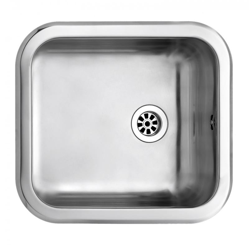 Kjøkkenvask,1 enkel kum for nedfelling. Leveres med ventil med plugg og vannlås.