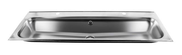 "Helpresset vaskerenne i rustfritt stål for nedfelling i plate. Vasken er utviklet for å kunne monteres over skap som utnytter plassen under vaskerenna. Leveres med overløp og 1 1/2"avløpsventil med kuppelrist. Skapløsning under vasken følger ikke med"