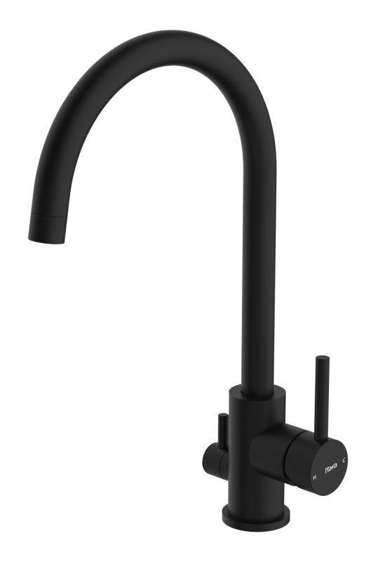 Kjøkkenbatteri rise rustfri svart med avstenging for oppvaskmaskin