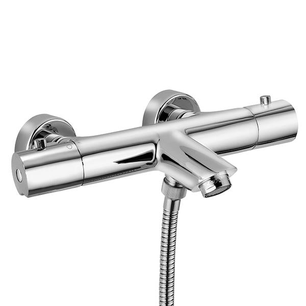 Badekar-/dusjbatteri med termostat. Inklusiv koblinger og rosetter. Krom. Eksklusiv hånddusj.