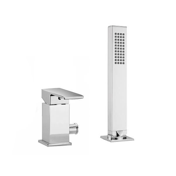 Firkantet ettgreps armatursett med hånddusj, kartut til montering på karkant. Krom.