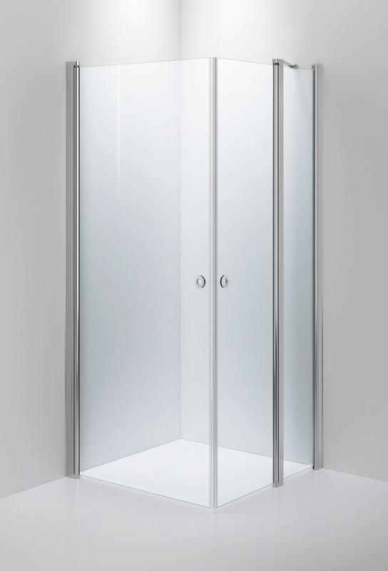 Dusjhjørne i 6 mm glass med en fast vegg og to innsvingbare dører. Måltilpasses på yttermål 300-1000 mm (dør) x 500 - 1500 mm (dør og fast vegg). Maks bredde på dør som er hengslet i fast vegg er 750 mm. Artikkelnummer og pris gjelder venstremodell, klart glass, profiler og grep i blank krom. Kan også fås i andre glass; Frosted, Smoke og Timeless. Veggprofiler og grep kan også fås i Matte Brushed, Matte White og Matte Black.