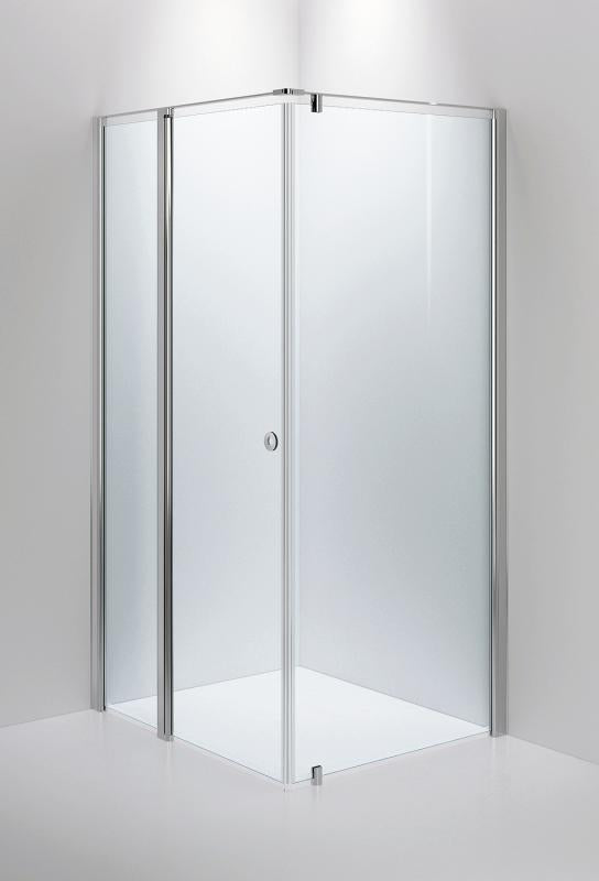 Dusjhjørne i 6 mm glass med en fast vegg og en mindre fast vegg med dør. Måltilpasses på yttermål 200 - 1000 mm (fast vegg) x 500 - 1500 mm (fast vegg og dør). Maks bredde på dør 750 mm. Artikkelnummer og pris gjelder klart glass, profiler og grep i blank krom. Kan også fås i andre glass; Frosted, Smoke og Timeless. Veggprofiler og grep kan også fås i Matte Brushed, Matte White og Matte Black.