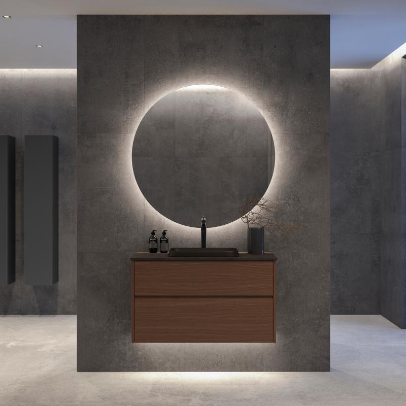 Rundt speil med stemningsgivende bakbelysning. Finnes i tre størrelser; Ø70 cm, Ø90 cm og Ø110 cm. Artikkelnummer og pris gjelder Ø90 cm. Dette speilet er ikke dimbart. Kobles til rommets strømbryter.