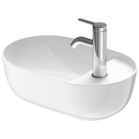 slipt underkant, uten overløp, Inkl. bunnventil med keramisk skjuler, Inkl. fastgjørelse, vendbar. Design by Cecilie Manz