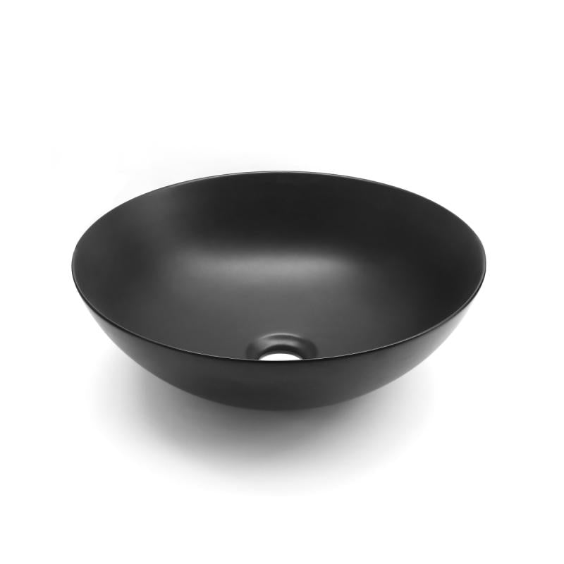 Bolleservant i i sort matt tynt porselen. Uten overløp. Mål: Ø400mmx140mm