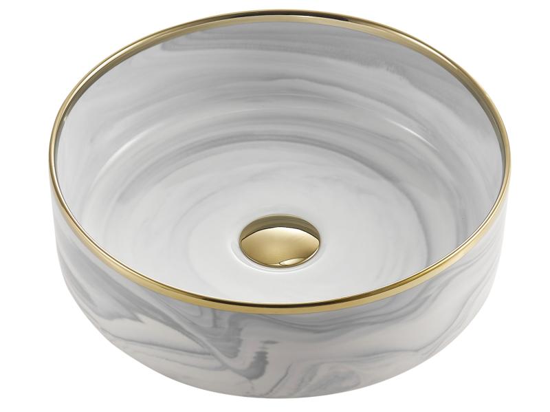 Nostalgisk, marmorert og fargerik servant med marmorert glasur og gullkant. Marino kommer i Blå, Rosa, Grønn og Grå. *Bunnventil medfølger ikke