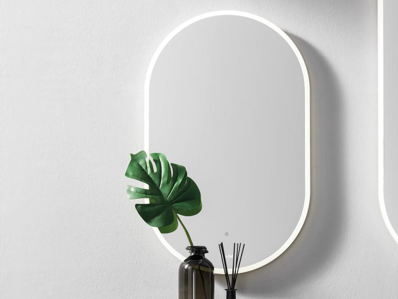 Matera speil har vi i 2 forskjellige høyder. De er lekre å bruke alene, 2 like sammen over større møbler eller som vist her en av hver høyde over stort møbel. Matera har LED -belysning rundt hele speilet. Matera har selvfølgelig vår egen unike sensor hvor du slår av/på. dimmer og fargejusterer lyset - Alt dette ved KUN 1 x bevegelses sensor! Ingen fingermerker!