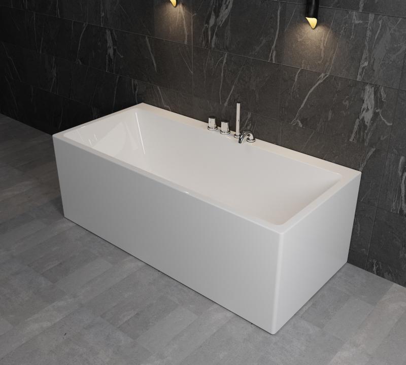Mime 160x75 BTW er et klassisk og moderne helstøpt badekar, produsert i Lucite® akryl. Plass for å montere armatur på badekarkanten. Kommer med klikkventil og justerbare ben. Badedybde 45 cm