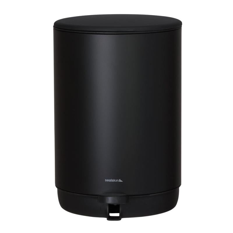 Med Soft Close - dempet lukking av lokket. Løs innvendig beholder i sort plast med bærehank i stål. Farge: matt sort / Str: 5 liter / Høyde 304mm / Ø202mm.