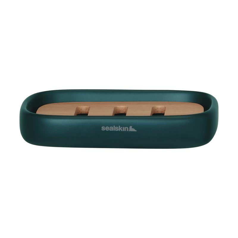 Frittstående baderomsserie produsert i betong med detaljer i tre. Såpeskålen leveres med løs såperist. Enkel å rengjøre. Farge: mørk grønn