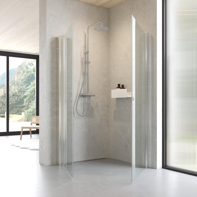 MIST dusjbatteri med rund takdusj - Ø250 mm. Blandebatteri fra Mora, Eco Flow-funksjon som sparer vann og innebygget skåldebeskyttelse. Høyde 1795-2095 mm fra gulv til underkant takdusj. Dusjstangen er justerbar.