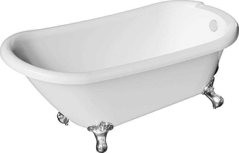Frittstående badekar i akryl Enkelsidig modell Ferdigmontert hvit bunnventil Overløpsarr Volum: 180 l Vekt: 34 kg kan fås i den fargen du vil