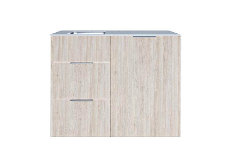 NORD MINI KITCHEN OSLO LYS EIK – LYS GRÅ B.PLATE 117CM VASK V – U/IND.TOPP