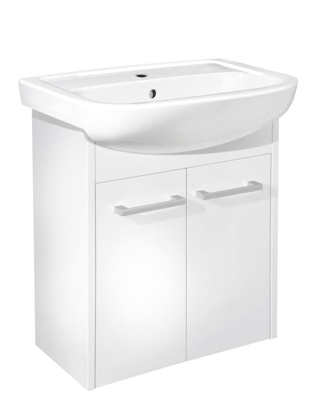 Gustavsberg Nordic3 60 cm servantskap, glossy white komplett møbelpakke med servant. Dører med Soft Close for myklukking. Åpning i skapet for avløp mot gulv.