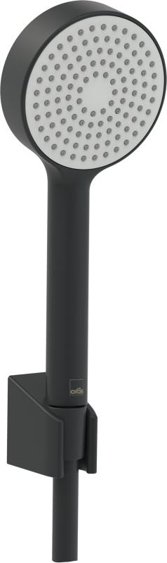 Oras Apollo hånddusjsett i matt sort, inkludert hånddusj, veggholder og 1500 mm dusjslange.