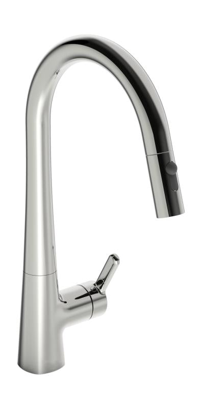 Kjøkkenkran med høy, svingbar tut og praktisk uttrekk med to sprayfunksjoner. Tutens svingradius er 120° (kan begrenses til 0° eller 60°). Det er innebygd begrensning for temperatur og vannmengde. Kranens høyde er 440 mm.