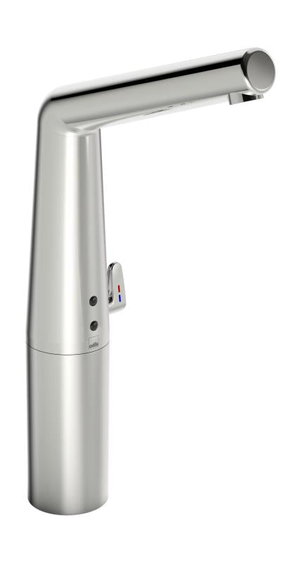 Berøringsfri høy servantkran til bolleservant med temperaturhendel. Kranens høyde er 357 mm. Batteridrift, 6 V. Kranen er utstyrt med smussfilter og tilbakeslagsventiler. Det kreves ingen justeringer ved installasjon på grunn av en avansert autofokus sensor. Bluetooth-tilkobling gjør det enkelt å overvåke og justere kranen. Den impulsstyrte magnetventilen gir batteriet lang levetid. Vannbegrenser 6 l/min.