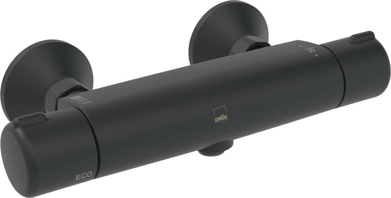 Oras Nova, i svart matt. Ved å bruke den nye og forbedrede Oras Comfort termostaten oppnår du rask responstid og maks +/- 1 gradvariasjon i temperaturen som skyldes endringer i trykk eller temperatur på vanntilførselen, også i installasjoner med mindre vannmengde. Med den nye Oras Comfort termostaten er du sikret en komfortabel dusjopplevelse og forbedret skåldebeskyttelse. Et sikkert valg i moderne bærekraftige installasjoner med mindre vannmengder og i installasjoner med trykk og temperaturvariasjoner