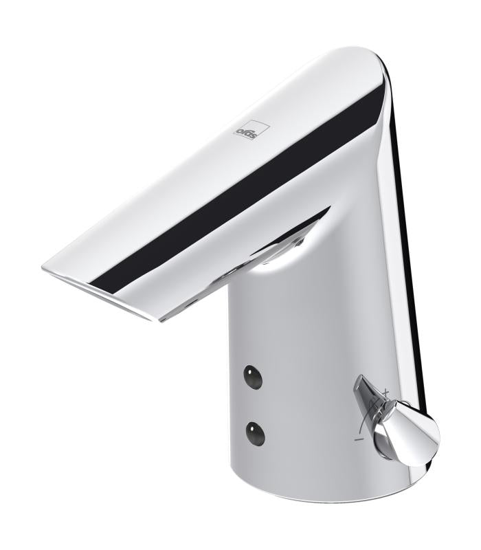 Berøringsfri servantkran med temperaturratt, batteridrift 6V. Høyden på kranen er 125 mm, det muliggjør installasjon i små rom. Den impulsstyrte magnetventilen gjør at batteriet har lang levetid. Vannbegrenser (4,8 l/min) gir lavt vannforbruk. Det kreves ingen justering ved installasjon med Oras Autofokus sensor. Bluetooth® tilkobling i sensor gjør det mulig å følge med på vannforbruk eller justere parametere etter brukerens behov.
