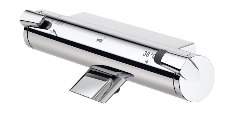Termostatstyrt kar- og dusjkran med grepsvennlige hendelratt. Den integrerte badekartuten tar liten plass og renner som et naturlig vannfall.