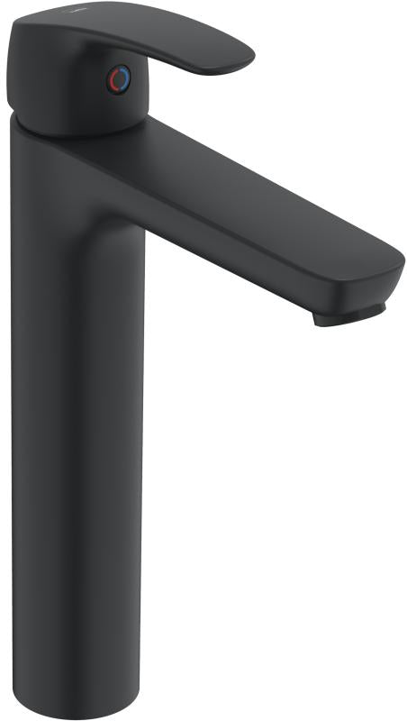 Høy servantkran som er velegnet til bolleservant, i svart matt. En stilren klassiker med rette linjer i god kvalitet. Hendelen er i moderne design som gir en god brukervennlighet. Mulighet for å stille inn kranen slik at den har en fast sperre for maks temperatur på varmtvannet og begrense vannmengden.