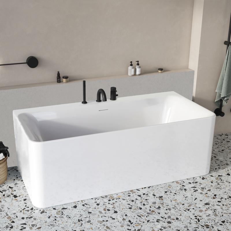 Stilrent dansk design. Funksjonelt og plassbesparende back-to-wall design - størrelse 1700x800mm. Utførelse i hvit akryl. Pris er inklusiv bensett, slisse overløp og bunnventil. Uten blandebatteri. Mål LxHxB: 170x60x80cm. Vekt: 40 kg. 10 års garanti.