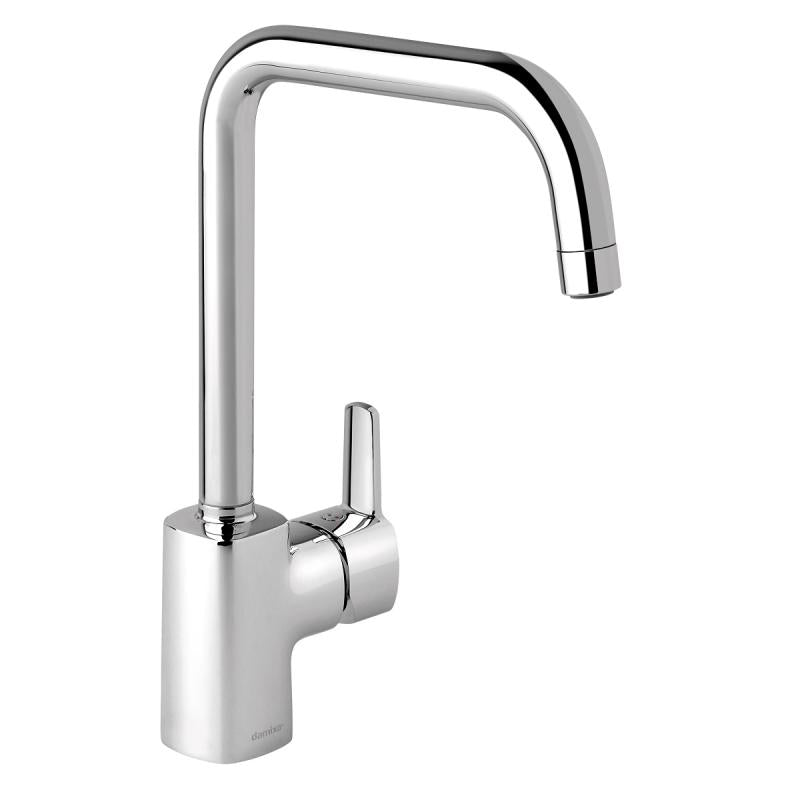 Kjøkkenkran med praktisk høy tut i tidløst design. Skoldesperre og eco-save. Krom