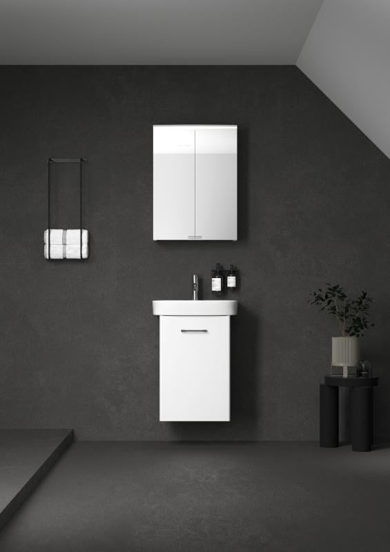 Porsgrund Glow 50 er en elegant og funksjonell møbelpakke som leveres komplett med underskap i hvit matt og porselensservant. En ideell løsning for å optimalisere plassen og gi et sofistikert preg til mindre toalettrom. Skapet er utstyrt med en flyttbar hylle og vendbar dør som har myktstengende hengsler. Det er produsert i fuktbestandig MDF/sponplate, og leveres ferdig montert. Servanten har en ekstra glatt glasur som gjør rengjøringen enkel og effektiv. Porsgrund Glow 50 møbelpakke inkluderer håndtak, vannlås, fleksibel avløpsslange, bunnventil med kjedet gummipropp og justerbare opphengsbeslag. Alternativt tilgjengelig i en varm mørkebrun trestruktur. Servantkran er ikke inkludert. Mål servant: B: 50, D: 36. Mål underskap: B: 43, H: 62, D: 30 cm.