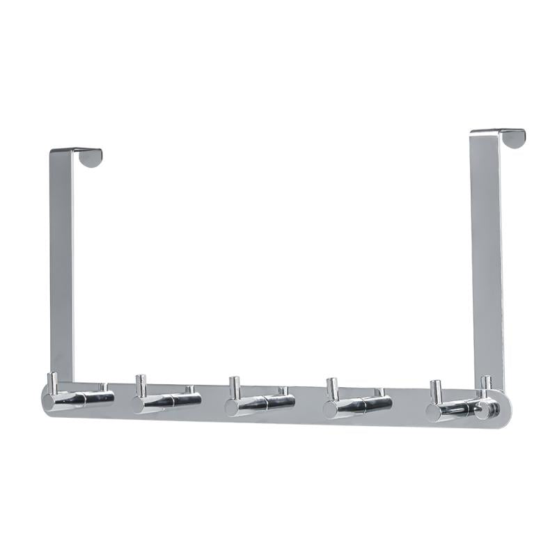 Praktisk krokrekke med fem kroker og krom overflate. Ingen montering, henges over dørkarmen. Lengde 395mm