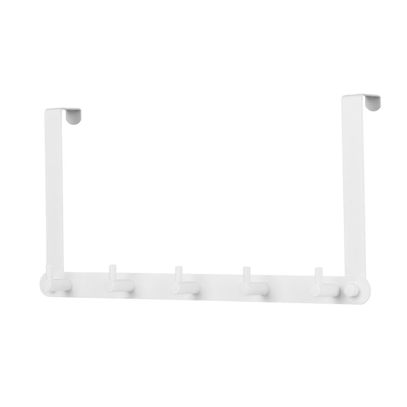 Praktisk krokrekke med fem kroker og matt hvit overflate. Ingen montering, henges over dørkarmen. Lengde 395mm