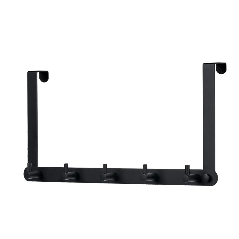 Praktisk krokrekke med fem kroker og matt sort overflate. Ingen montering, henges over dørkarmen. Lengde 395mm