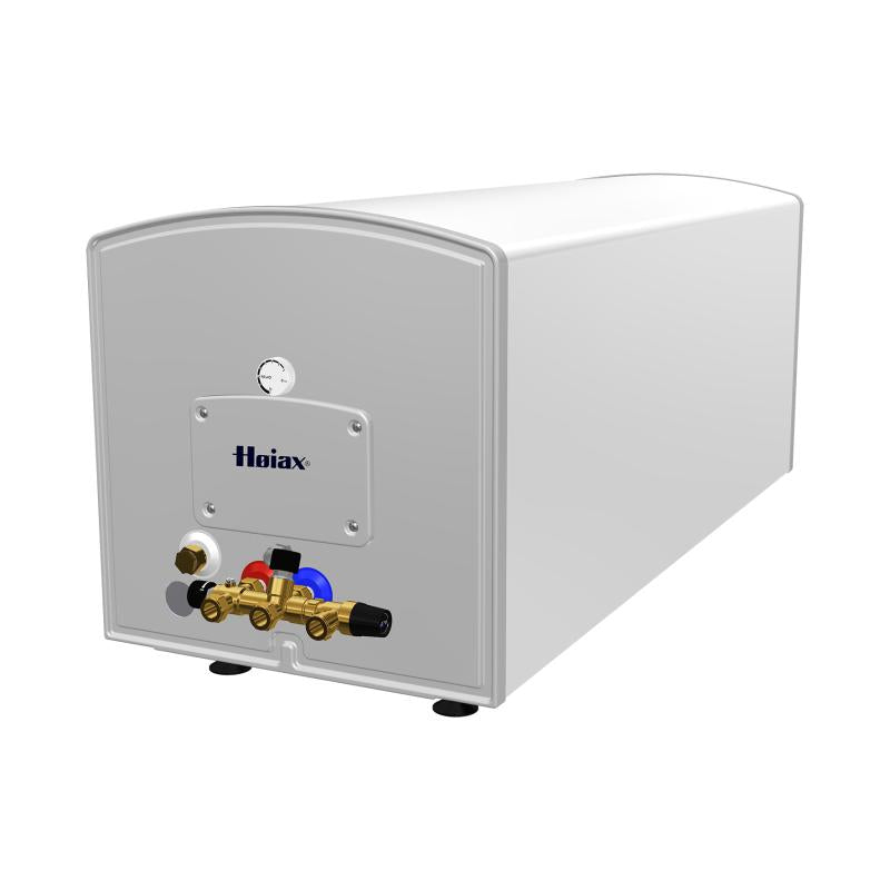 Høiax Quadro L 110 liggende bereder passer ypperlig der hvor takhøyden er lav, eksempelvis i krypkjellere, over himlinger osv. Den leveres som firkantet, smal modell, og er prelakkert hvit. Den er skumisolert med høykvalitets, vannbasert og kompakt Høiax TermoTech?skum sikrer maksimal isolering/minimalt varmetap, og er dermed strømbesparende. Den kommer med Aquatemp termostatisk to-rørs blandeventil og egen plugg for tapping.