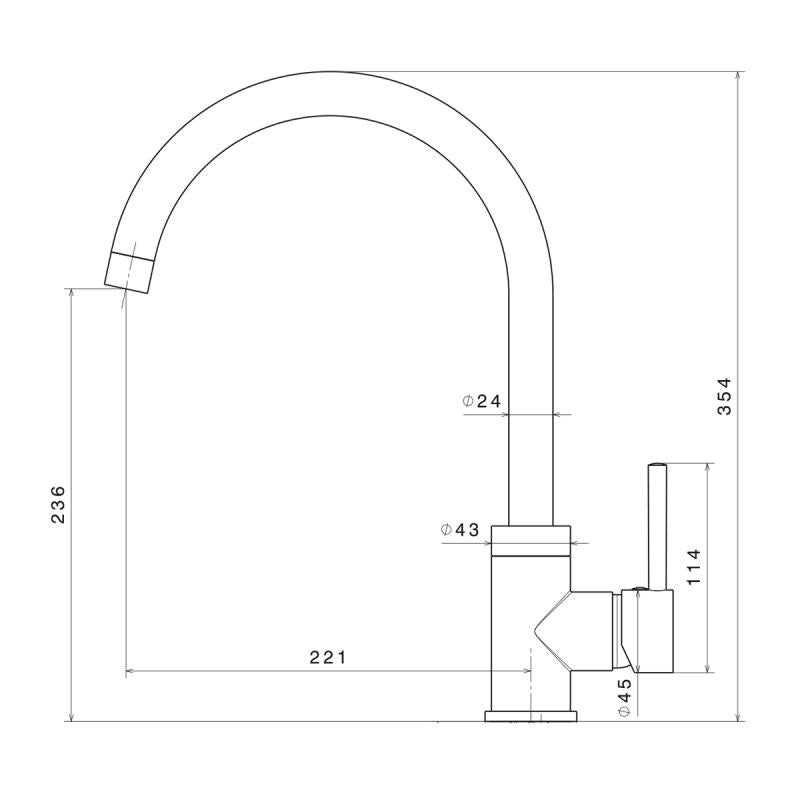 Enkel og stilig kjøkkenkran med praktisk høy C-tut, sort antrasitt overflate.