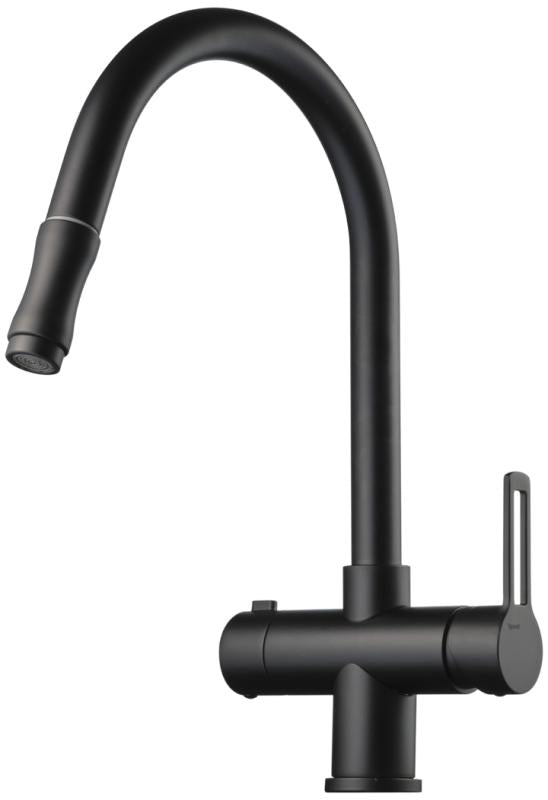 Kjøkkenbatteri med avstengning for oppvaskmaskin og uttrekkbar ha?nddusj.