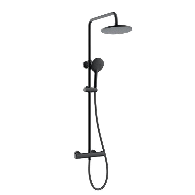 Leveres med termostatbatteri, teleskopstang og hånddusj med AutoClean funksjon som forhindrer kalkdannelse i dysene.