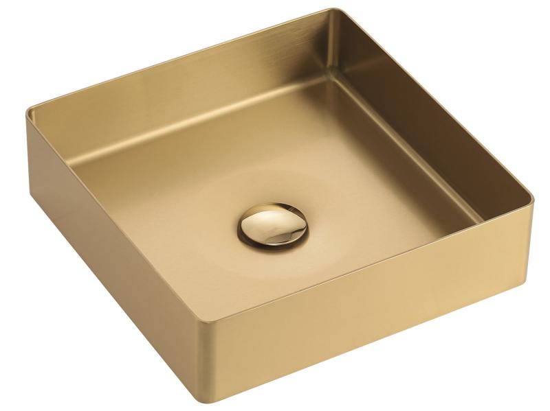 Firkantet bolleservant i rustfritt stål. Sabrina kommer i 3 flotte overflater: Børstet Kobber, Børstet Gull og Gunmetal. Match disse servantene med våre armaturer i samme utførelse for et eksklusivt uttrykk. *Bunnventil medfølger ikke - Vi anbefaler bruk av åpen bunnventil