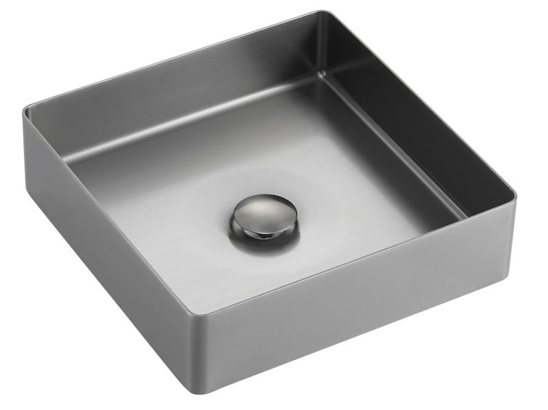 Firkantet bolleservant i rustfritt stål. Sabrina kommer i 3 flotte overflater: Børstet Kobber, Børstet Gull og Gunmetal. Match disse servantene med våre armaturer i samme utførelse for et eksklusivt uttrykk. *Bunnventil medfølger ikke - Vi anbefaler bruk av åpen bunnventil