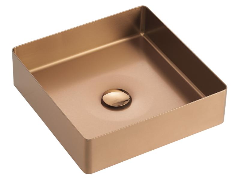 Firkantet bolleservant i rustfritt stål. Sabrina kommer i 3 flotte overflater: Børstet Kobber, Børstet Gull og Gunmetal. Match disse servantene med våre armaturer i samme utførelse for et eksklusivt uttrykk. *Bunnventil medfølger ikke - Vi anbefaler bruk av åpen bunnventil