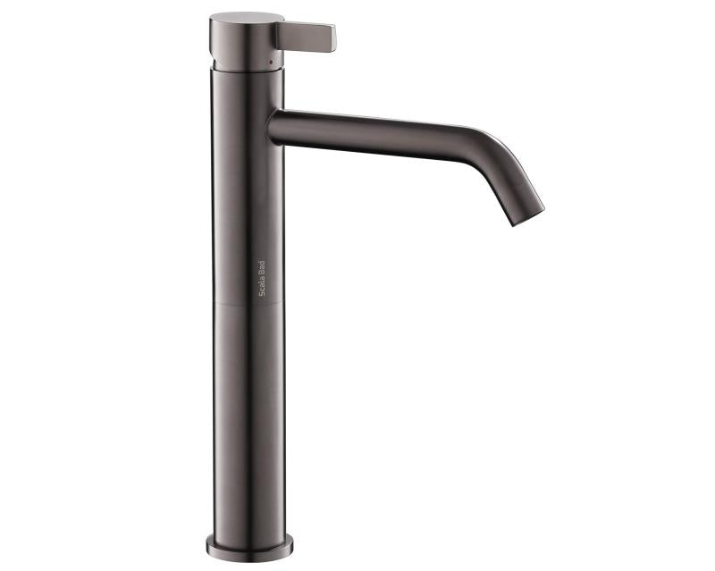 Savino høyt servantarmatur til bolleservant i rustfritt stål og PVD overflatebehandlet Børstet Gunmetal. Savino Kommer i 5 ulike overflater samt i lav modell. Match Savino servantarmatur med bunnventil i samme utførelse. Savino er SINTEF-Godkjent.