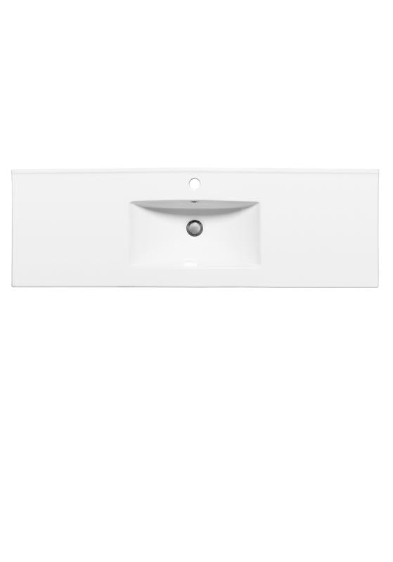 Servant i porselen med rektangulær vask og overløp. Kompletter med bunnventil.