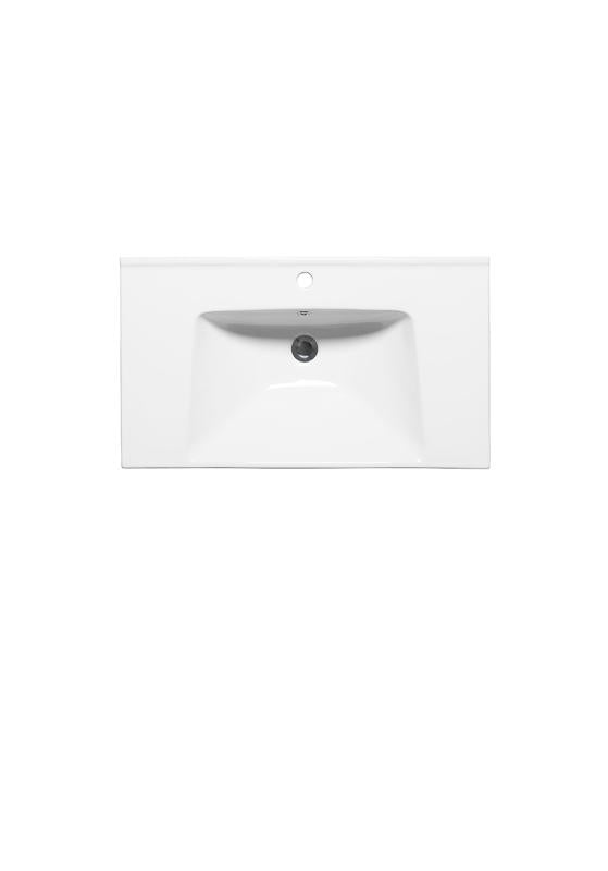 Moderne vaskeservant i porselen med spenstig form som strekker seg frem til kanten, utviklet av våre egne designere. Den unike formen harmonerer fint med servantskapets rette linjer, og det er avlastningsflater på begge sider.