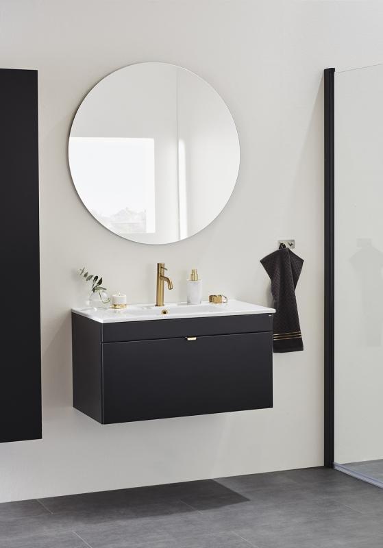 Servantskap i fløyelsmatt lakk i svart eller hvitt med mykstengende skuff og servant. Enkelt å installere for en person med skinne på veggen. Forberedt for både vegg- og gulvavløp i bakkant for enkel montering. Justerbare monteringsbraketter. Kompletter med PUM-vannlås for kommode, 126 56 00. Sett din personlige stil med ett av våre håndtak eller knotter.