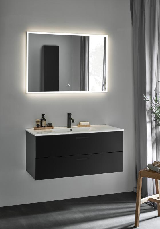 "Hafa Go servantskap med porselensservant er praktiske og stilrene baderomsmøbler med glatte fronter og mulighet for deg å sette din stil ved å legge til et av våre håndtak. To myktlukkende skuffer med fullt uttrekk gir god oversikt over innholdet.