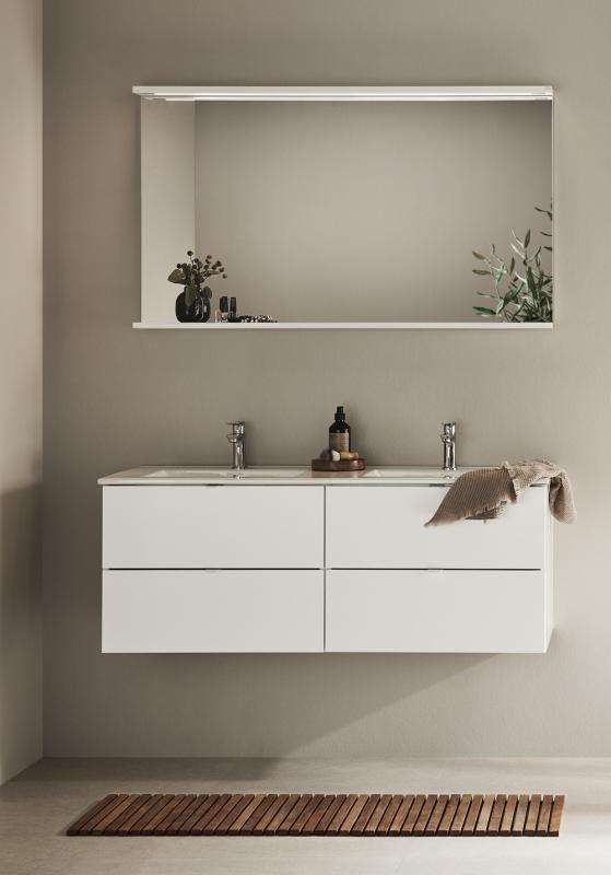 Hafa Go servantskap med porselensservant er praktiske og stilrene baderomsmøbler med glatte fronter og mulighet for deg å sette din stil ved å legge til et av våre håndtak. Myktlukkende skuffer med fullt uttrekk gir god oversikt over innholdet.