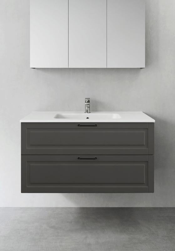 Hafa Grace er baderomsmøbler med vakkert profilerte fronter designet for å passe inn i både et landlig og et moderne baderom i skandinavisk stil. Mykstengende skuffer med fulluttrekk gir god oversikt over innholdet. Skuffematter og skuffeinnredning av bambus hjelper til med å holder orden. Baderomsskapet er ferdigmontert og enkelt å montere med justerbare opphengsbraketter og plass tilrettelagt for både vegg- og gulvavløp. Grace servantskap finner i flere bredder fra 600 opp til 1200 og i tre matte farger - hvit, grå og antrasitt. Breddene 600 og 800 er også tilgjengelig i to dybder. Sidemodulen gir mulighet til å lage ytterligere varianter og kombinere et baderomsmøbel som passer akkurat ditt baderom. Velg håndtak eller knott som passer din stil og kompletter med frittstående servant på en benkeplate eller nedsenket servant i porselen. Kjøp til blandebatteri, bunnventil, vannlås, skuffebelysning og stikkontakt.