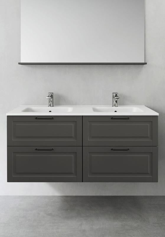 Hafa Grace er baderomsmøbler med vakkert profilerte fronter designet for å passe inn i både et landlig og et moderne baderom i skandinavisk stil. Mykstengende skuffer med fulluttrekk gir god oversikt over innholdet. Skuffematter og skuffeinnredning av bambus hjelper til med å holder orden. Baderomsskapet er ferdigmontert og enkelt å montere med justerbare opphengsbraketter og plass tilrettelagt for både vegg- og gulvavløp. Grace servantskap finner i flere bredder fra 600 opp til 1200 og i tre matte farger - hvit, grå og antrasitt. Breddene 600 og 800 er også tilgjengelig i to dybder. Sidemodulen gir mulighet til å lage ytterligere varianter og kombinere et baderomsmøbel som passer akkurat ditt baderom. Velg håndtak eller knott som passer din stil og kompletter med frittstående servant på en benkeplate eller nedsenket servant i porselen. Kjøp til blandebatteri, bunnventil, vannlås, skuffebelysning og stikkontakt.