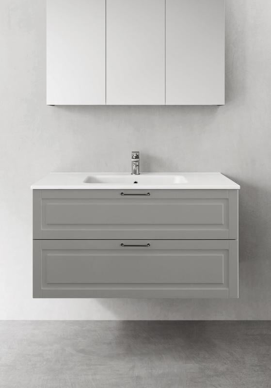 Hafa Grace er baderomsmøbler med vakkert profilerte fronter designet for å passe inn i både et landlig og et moderne baderom i skandinavisk stil. Mykstengende skuffer med fulluttrekk gir god oversikt over innholdet. Skuffematter og skuffeinnredning av bambus hjelper til med å holder orden. Baderomsskapet er ferdigmontert og enkelt å montere med justerbare opphengsbraketter og plass tilrettelagt for både vegg- og gulvavløp. Grace servantskap finner i flere bredder fra 600 opp til 1200 og i tre matte farger - hvit, grå og antrasitt. Breddene 600 og 800 er også tilgjengelig i to dybder. Sidemodulen gir mulighet til å lage ytterligere varianter og kombinere et baderomsmøbel som passer akkurat ditt baderom. Velg håndtak eller knott som passer din stil og kompletter med frittstående servant på en benkeplate eller nedsenket servant i porselen. Kjøp til blandebatteri, bunnventil, vannlås, skuffebelysning og stikkontakt.