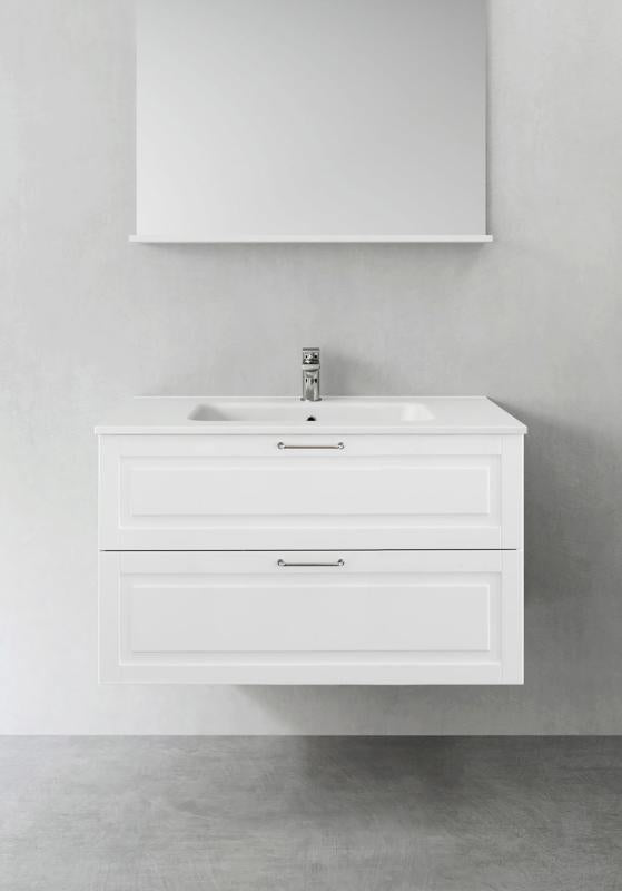 Hafa Grace er baderomsmøbler med vakkert profilerte fronter designet for å passe inn i både et landlig og et moderne baderom i skandinavisk stil. Mykstengende skuffer med fulluttrekk gir god oversikt over innholdet. Skuffematter og skuffeinnredning av bambus hjelper til med å holder orden. Baderomsskapet er ferdigmontert og enkelt å montere med justerbare opphengsbraketter og plass tilrettelagt for både vegg- og gulvavløp. Grace servantskap finner i flere bredder fra 600 opp til 1200 og i tre matte farger - hvit, grå og antrasitt. Breddene 600 og 800 er også tilgjengelig i to dybder. Sidemodulen gir mulighet til å lage ytterligere varianter og kombinere et baderomsmøbel som passer akkurat ditt baderom. Velg håndtak eller knott som passer din stil og kompletter med frittstående servant på en benkeplate eller nedsenket servant i porselen. Kjøp til blandebatteri, bunnventil, vannlås, skuffebelysning og stikkontakt.