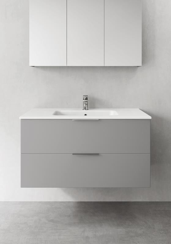 "Våre servantskap fås og kan kombineres i breddene 600, 800, 900, 1000 og 1200. De fleste kan også kombineres sammen med sidemodul 300 for ytterligere bredde eller en annen løsning, og disse kan leveres med passende benkeplater. Bredde 600 og 800 fås også i en kompakt modell med tilhørende vaskeservant og benkeplater. Myktlukkende skuffer med fullt uttrekk, skuffesider av metall og en innredning av bambus for småsakene. Dessuten en uttakbar skuffematte som holder tingene på plass. Øverste skuffen har U-konstruksjon som gir plass til vannlås. Kompletter med PUM-vannlås til kommode, 126 56 00. Forberedt for både vegg- og gulvavløp.
